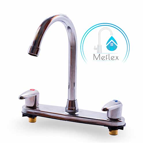 Fregadero de 8″ con manillas tipo palanca y tubo cuello de cisne. Especial para darle un toque delicado y elegante a tu cocina.